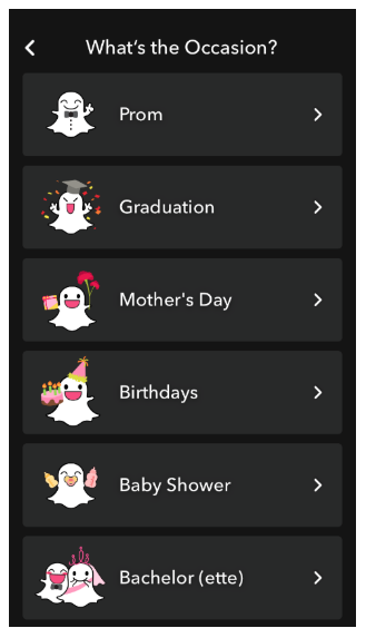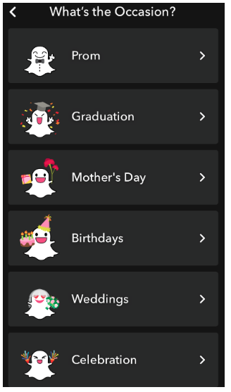 Now choose a specific occasion that you’re creating the custom Snapchat geofilter for: