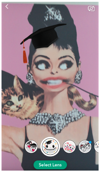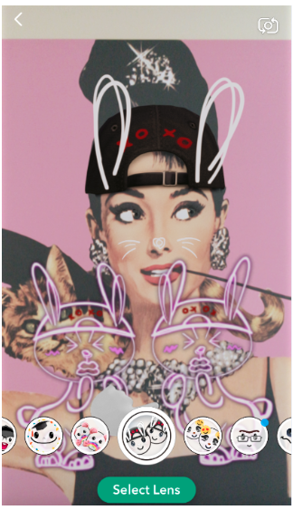 Now you’ll get to play around with different “base” lenses along the bottom of the screen, applying them with your camera to any face in your area: