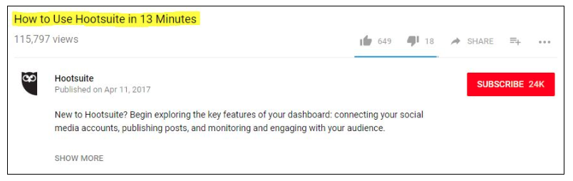 “The title of your video is probably the most important SEO factor to consider,” writes Brendan Cournoyer, marketing VP at Brainshark. “Titles for YouTube videos should include relevant keywords to ensure high rankings in Google and YouTube search, while still being compelling enough to encourage clicks and views.”