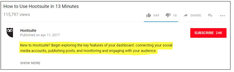 “The Description field in YouTube represents another opportunity to let search engines know what your video is about,” explains Cournoyer. “These descriptions also appear as rich snippets in search results [and] can help encourage more clicks to your content.”