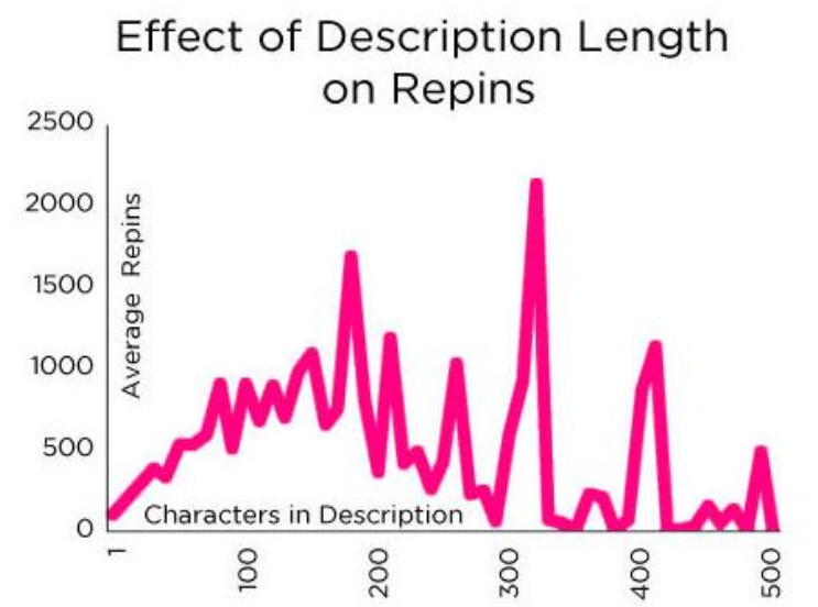 Studies show that descriptions containing about 200 characters receive the most repins: